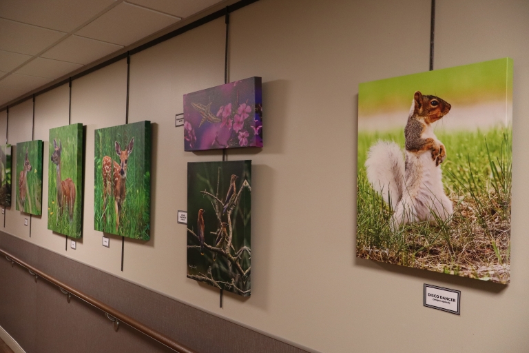 Now retired from teaching, both Marilyn and Randy continue to care for the homeless animals and pursue photography, now focusing on wildlife and Iowa scenery. Together the couple has established a gallery in Fonda, the “Prairie Song Gallery,” where visitors can leisurely browse through an entire building of photography and artwork, pausing in rooms to absorb the view and listen to relaxing music. Rooms at the gallery feature a wide variety of photo subjects, each room focusing on specific subjects like “Birds, Blooms and Butterflies,” “Winter in Iowa,” “Horses,” “Wildlife” and “Animals.” Visitors, individuals and groups are most welcome and are asked to call to set up a time to visit that works in their schedule. The coffee pot and refreshments are always ready to make it a truly enjoyable visit.
